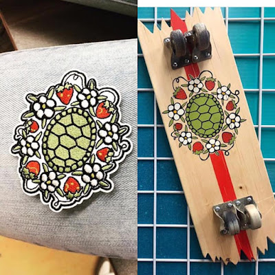 New patches by collaborators & mentors @monique.aura & @chiefladybird from the @oasisskateboardfactory ‘SK8 is Life’ Indigenous Skateboard History Timeline